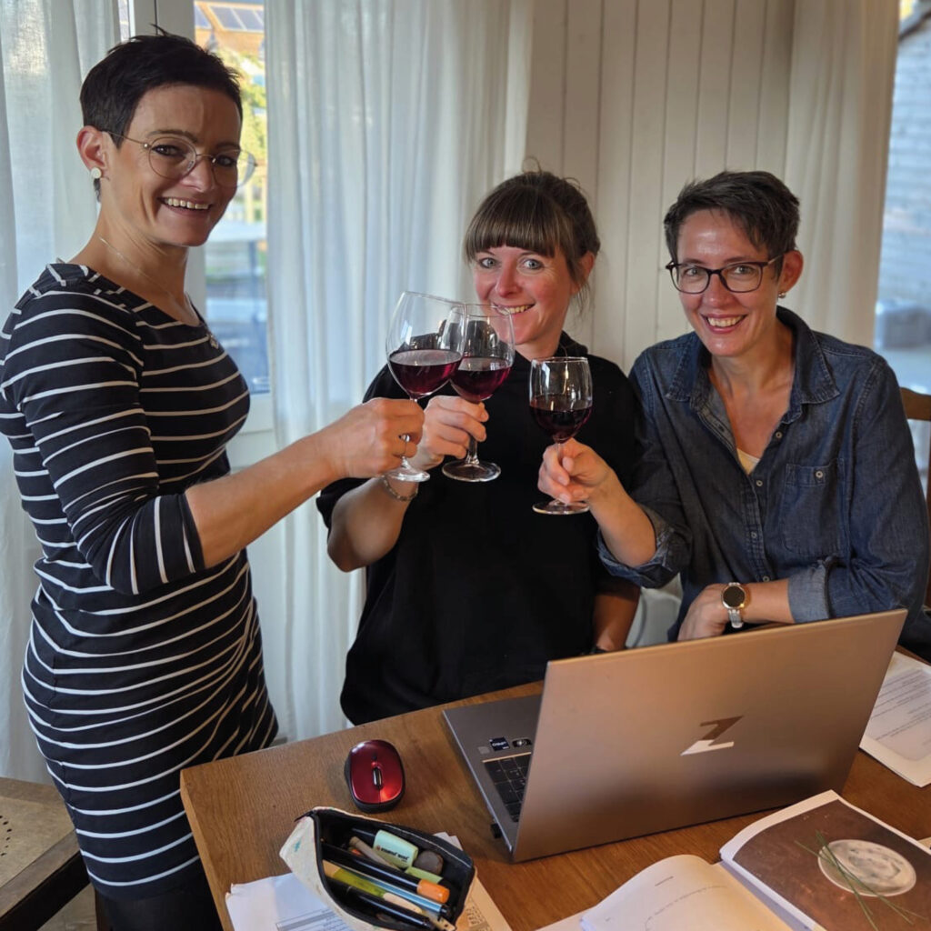 Nach diesem erfolgreichen und langen Tag haben wir natürlich auf unser Kochbuch angestossen!