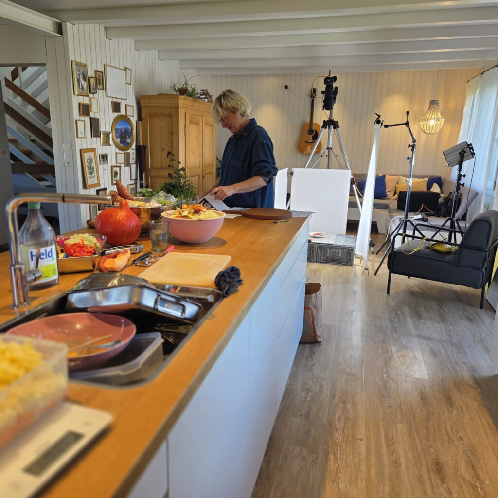 Nun hiess es fortlaufend kochen, stylen fotografieren, Fotos bearbeiten und ins Layout einfügen. Die Stimmung am Set war freundschaftlich, humorvoll und in keiner Weise hektisch. Eine totale Wohlfühl-Atmosphäre.