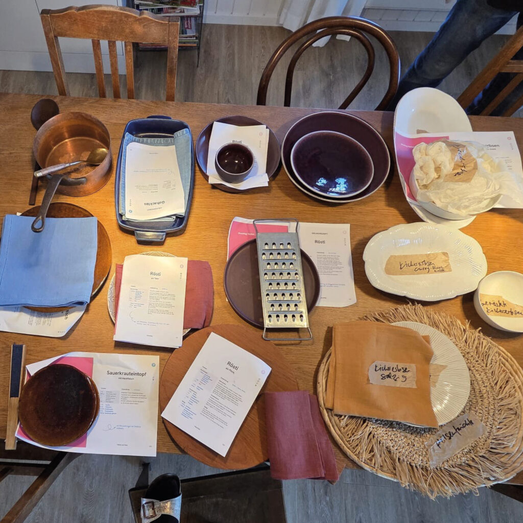 Das Fotoshooting wurde geplant: Wann wird was gekocht und was braucht es dazu? Einerseits benötigen wir alle Lebensmittel für die Gerichte und andererseits alle Accessoires (Props) wie z. B. Teller, Schüsseln, Untergrund.