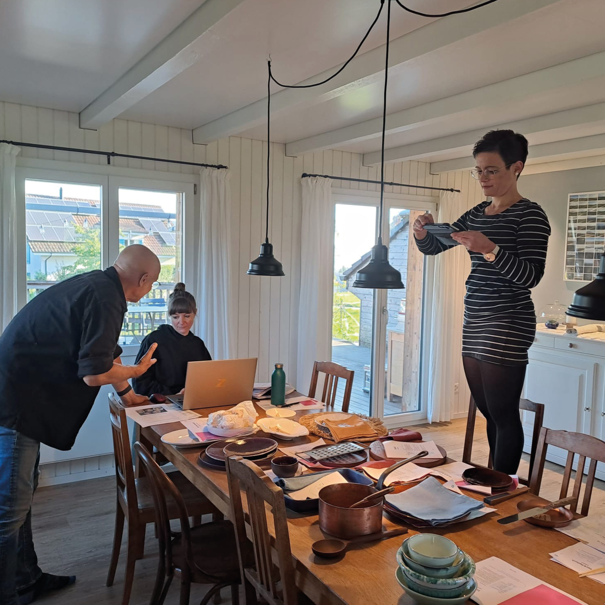 Das Fotoshooting wurde geplant: Wann wird was gekocht und was braucht es dazu? Einerseits benötigen wir alle Lebensmittel für die Gerichte und andererseits alle Accessoires (Props) wie z. B. Teller, Schüsseln, Untergrund.